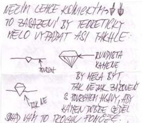 „…chtělo by to odvrtat něčím lehce kónickým…rundista kamene by měl sedět tak nějak zároveň s povrchem hlavy, aby kámen dobře seděl“…