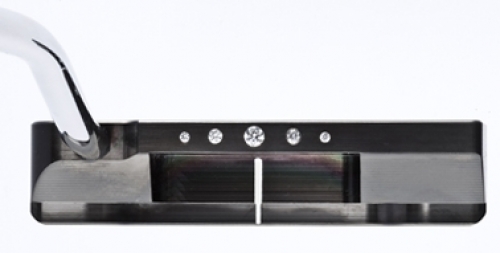 … píše mi zlatnice návod na zasazení drahých kamenů do hlavy zakázkového putteru :-) Připadá mi podezřelý, že kamínky, které nejsem schopen vzít díky velikosti (nebo spíš malosti) ani do prstů nemají svoje výkresy s rozměry nejlépe v setinách milimetru. Nakonec to řeší ručně nabroušená fréza, několik pokusů do kusu nerezu, zatajit dech a pustit frézu do originálu, který existuje pouze a jenom v tomto provedení a prakticky se nedá nahradit. Fréza sice jednou praskne díky velmi houževnaté titanové povrchové úpravě, výsledek to ale již nemůže ovlivnit. Skvělé! Druhý den mám již našaftováno a nagripováno, vyrobil jsem pro tento kousek jedinečný černý korkový grip. Snad se majitelce bude líbit. Druhý den nalepit kameny…..výsledek je opravdu skvělý, je to nádherný šperk. Stamp B.015