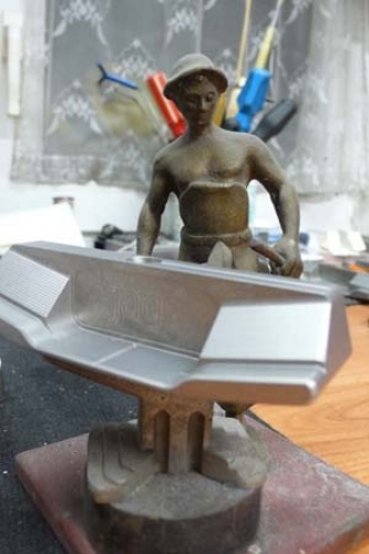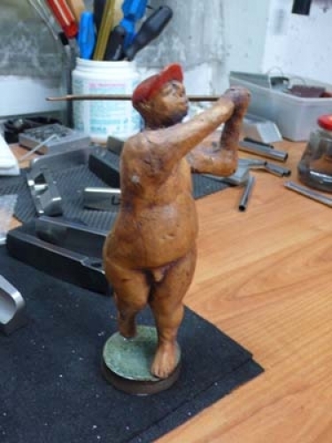 Mám na dílně 2 talismany. Sošku kováře vyrobil můj děda Willi, celá léta jsme ji měli na polici v dílně doma. Putter mu na kovadlinu pasuje skvěle. Druhou jsem dostal od M. k narozeninám, nahatej tlustej golfista je skvělej, ale nemyslim si, že M. předpokládá, že budu jednou takhle vypadat. Akorát se nějak nemůžu rozhodnout, kterej jag' je vlastně ten TEĎ a kterej ten POTOM. Happy Christmas!