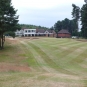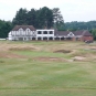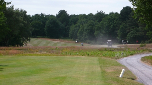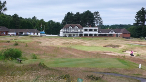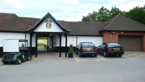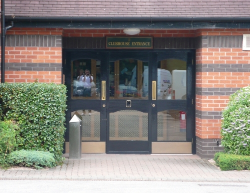 Elektricky ovládanou branou vjíždíme na skoro prázdné parkoviště klubu (jsme tu brzo). U klubovny nás vítá Senior Captain (to, že to je on se dozvídám později) a místo pozdravu sděluje kód (fivezerofourzero), jak se přes klávesnici u vchodu do klubovny dostaneme. Kde je tu recepce? Co? Recepce! Nevím, zeptejte se v shopu. Cesta do shopu vede naštěstí okolo trucku anglické golfové federace, kde je registrace hráčů. Našli jsme, co jsme hledali. Komisař uvnitř je evidentně potěšen Markovým cizím přízvukem a připadá si důležitě. Kde je tu driving? Co? Driving! Někde, kde je možné trénovat. Aha. Jeďte 400 yardů tímhle směrem a tam to uvidíte. Ok. Automat na balony je tam? Co? Automat na balony. Aha. Vezměte si svoje. Pokud nemáte, je tu shop, tam si je můžete koupit. Aha. Místo jízdy na louku jdeme omrknout klubovnu, 2 klece se sítí za shopem (driving) a to co je vidět ze hřiště (jednička, pětka a osmnáctka). Ferveje jsou značně hnědé, rafy ještě hnědší, ale to může být samozřejmě optický klam.