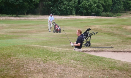 Další den fouká víc. Dost víc. Marek dává pár ran do sítě (imitující driving) a snaží se odhadnout, kam by to asi letělo. Chce mi, evidentně v dobrém úmyslu, hodit pár provéček do roští „abych se rozhledal“, ale přece si hned neušpinim kalhoty. První devítka celkem v pohodě a dobré náladě. Bohužel tu obtížnější část máme před sebou. Trojpat na dvanáctce, rána do lesa na patnáctce a trojitý bunkershot na šestnátce pohřbívají veškeré naděje. Ani birdie na osmnáctce s velkým aplausem přihlížejících na tom nemůže nic změnit. Skóre dne většiny hráčů se pohybuje v průměru 3 rány nad včerejší výsledek a několik borců odchází s devadesáti. Jen hrstka vyvolených hraje stabilně, John Longcake 70, Jamie Miller 71, Roger Roper 73, Mark Wharton dokonce 75. Pivo, fivezerofourzero a domů.