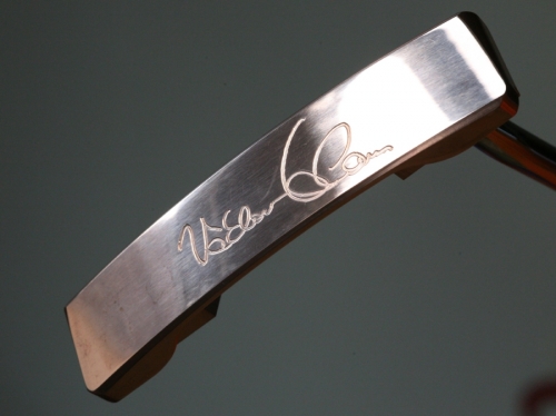 Blesková zakázka (pátek zadání, úterý dodávka), ale co by člověk neudělal pro prezidenta. Měděný model Ψ LE, gravura podpisu Václava Klause na spodní straně, kožený grip se žlutým kordem, bílý headcover 09. Znalci potvrdí, že se jedná o nejexkluzivnější model v našem sortimentu a hraje se s ním skvěle.