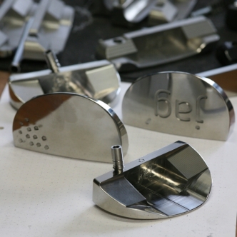 Asi před dvěma hodinami jsem dodělal, resp. připravil pod povrchovku historicky první mallet jag´. Rozsáhlé výběrové řízení na název modelu vyhrál s velkou pompou Richard, bohužel bylo až následně zjištěno, že jméno se včetně grafického návrhu velmi nápadně podobá již používané značce známé firmy. Takže jsem od Richieho návrhu dočasně upustil a model pracovně označuji jako 461 (Ocean Boullevard). Než půjde do série, něco vymyslíme. Zatím se jedná o 20 kusů, číslování (sekvence T00.20) je netradičně raženo na úderové ploše, 3 typy šaftování (DB,SB,C –na horní střed a na hranu horního středu), 350 gramů (takže to na co jste zvyklí), samozřejmě RH i LH provedení. Povrchová úprava bude stříbrná matná, boky a spodek ve vysokém lesku. Při zkoušce na dílně se mi zdá jako opravdu skvělý. Nádherně vede, hlava je přitom velmi malá (menší než by jste čekali) a jako by vás nutí trefit sweetspot. No uvidíme na jaře na greenu. První kusy budou hotovy na konci prvního týdne 09, fotky (díky tomu, že se dvorní studiový fotograf fláká 3 měsíce někde v Mikronésii, Polynésii, nebo kde, zkrátka někde mezi Novým Zélandem a Japonskem) trochu později. Mějte se fajn, vše nejlepší v novém roce a hodně zdravi !