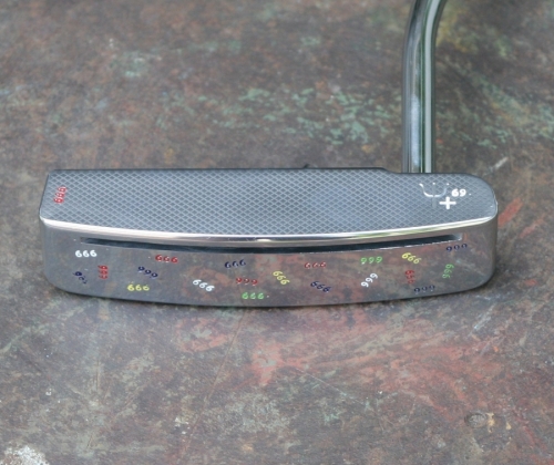 Ψ+, modified to a weight of 340g, swing weight D2, TT SB shaft. The head is narrower as opposed to the standard of 3mm, the hitting area is slit underneath for better weight distribution. A matt silver coating, glossy heel. It jingles like a sleigh bell! I am not sure whether I will deliver it to the owner. Or … could I finally make my own custom putter?